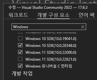 NodeRT를 사용하려면 먼저 Windows SDK를 설치해야 한다. Visual Studio Installer가 설치되어 있다면 SDK 체크만 하고 설치하면 되지만, 그렇지 않다면 Microsoft Developer Page의 Windows SDK 아카이브에 방문하여 직접 설치할 수 있다.